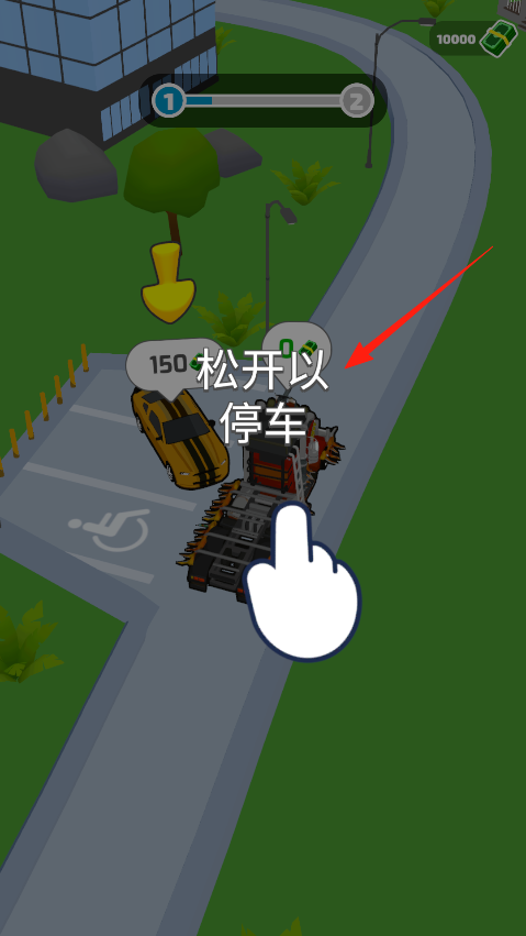 2、拖車開動時要一直按著屏幕,看到松開以停車的提示就得及時松手,把黃色跑車安全送到指定位置就能過關(guān),路上要小心別撞到圍欄和障礙物。