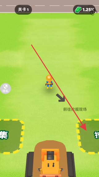1、在游戲開(kāi)始時(shí),按照提示前往挖掘現(xiàn)場(chǎng),開(kāi)啟挖掘任務(wù)。