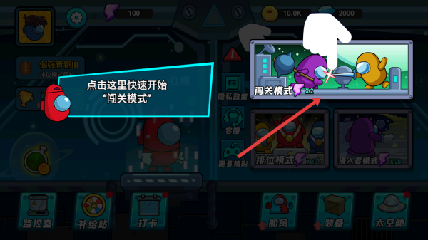 1、游戲開(kāi)始時(shí),點(diǎn)擊界面上標(biāo)有闖關(guān)模式的區(qū)域,開(kāi)啟你的冒險(xiǎn)之旅。