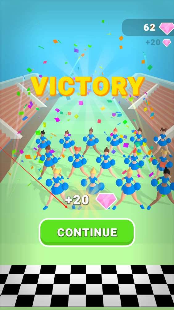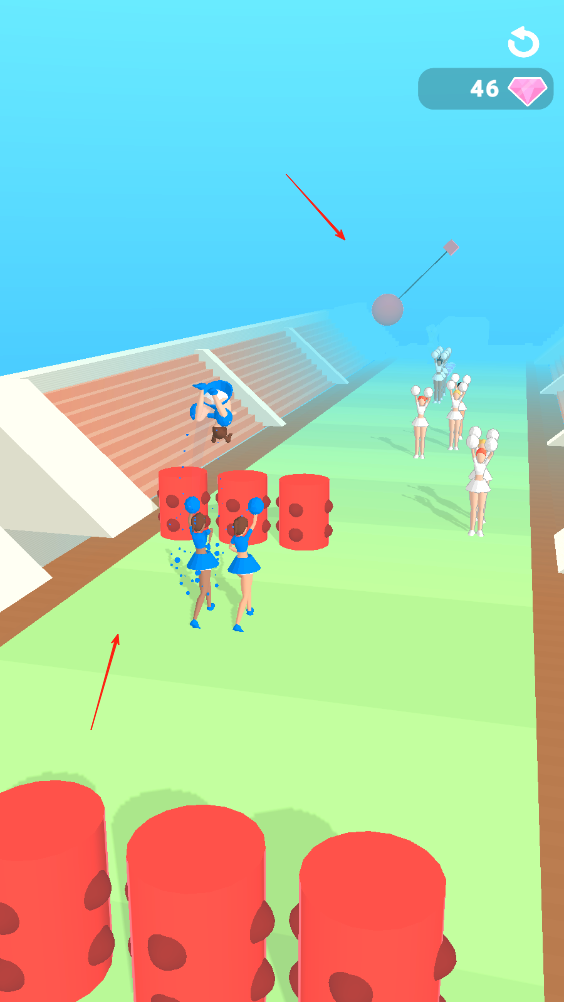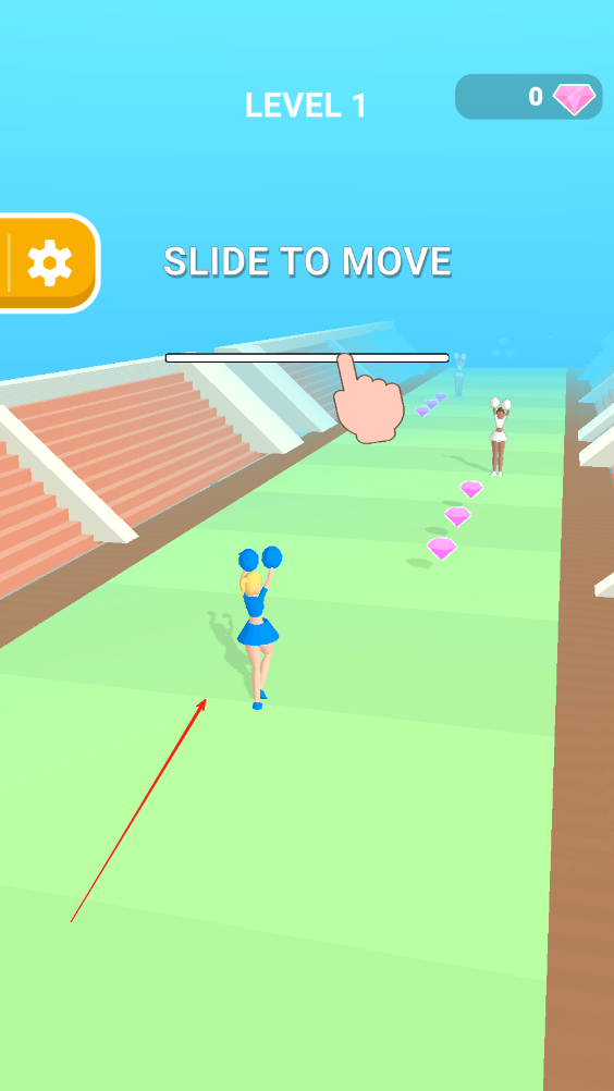 1、操控第一名啦啦隊(duì)隊(duì)員開(kāi)始前進(jìn),滑動(dòng)屏幕收集沿途的拉拉隊(duì)員,將其收羅進(jìn)隊(duì)伍,女孩們則會(huì)呈現(xiàn)疊羅漢的形式前進(jìn)。