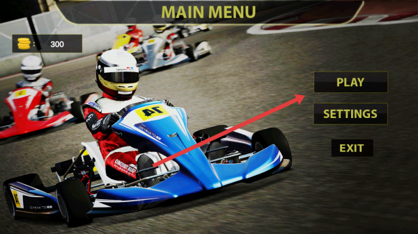 1、在卡丁車游戲主菜單,點擊右側(cè)PLAY按鈕,進入賽車選擇界面,準(zhǔn)備挑選性能各異的戰(zhàn)車,開啟賽道競速挑戰(zhàn)。