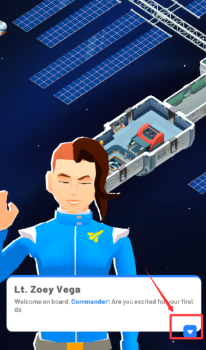 2、點(diǎn)擊紅框藍(lán)色對(duì)勾按鈕,確認(rèn)維加中尉的歡迎對(duì)話。