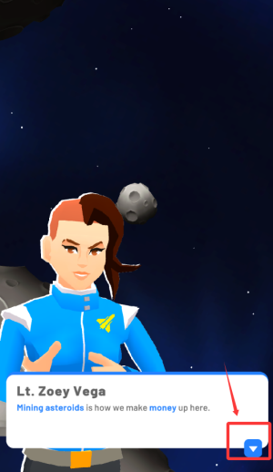 3、點(diǎn)擊紅框藍(lán)色箭頭按鈕,確認(rèn)小行星采礦賺錢說明。