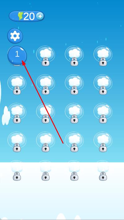 1、進(jìn)入游戲,在關(guān)卡選擇界面,選擇第1關(guān),通過虛擬方向按鈕控制貓咪移動方向,利用炸彈破壞磚塊開辟道路。