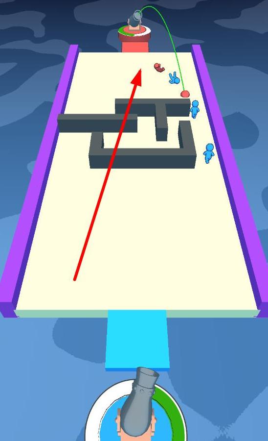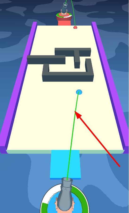 1、進入游戲,選定初始大炮,觀察迷宮的布局后,滑動調(diào)整發(fā)射的角度,將角色發(fā)射到場上。
