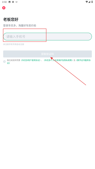 2、進(jìn)入登錄的頁面內(nèi),輸入手機(jī)號點(diǎn)擊獲取驗(yàn)證碼。