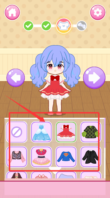 3、進入衣櫥挑選潮流服飾,通過簡單拖拽實現(xiàn)多套穿搭風格切換。