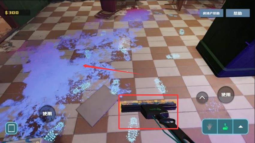 4、使用拖把,對污漬進(jìn)行清潔,即可完成關(guān)卡。