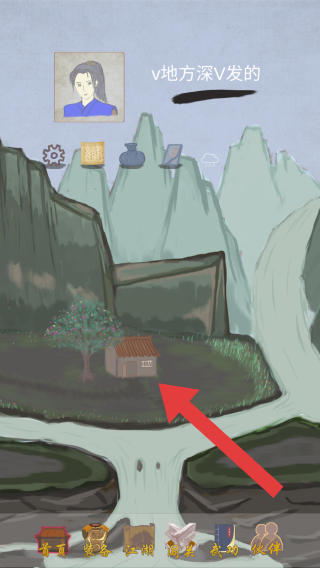1、玩家處于偏僻的山莊內(nèi),呈現(xiàn)了一座房屋醫(yī)以及大山,需要在此處進行修行,可點擊房屋四處進行觀察。