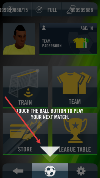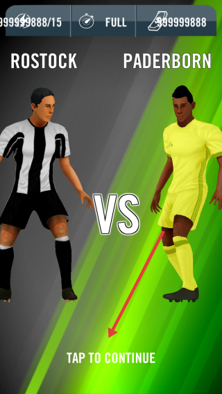 1、點(diǎn)擊底部足球按鈕,進(jìn)入足球模擬游戲賽事匹配,選定對(duì)戰(zhàn)隊(duì)伍后,點(diǎn)TAP TO CONTINUE開啟比賽。