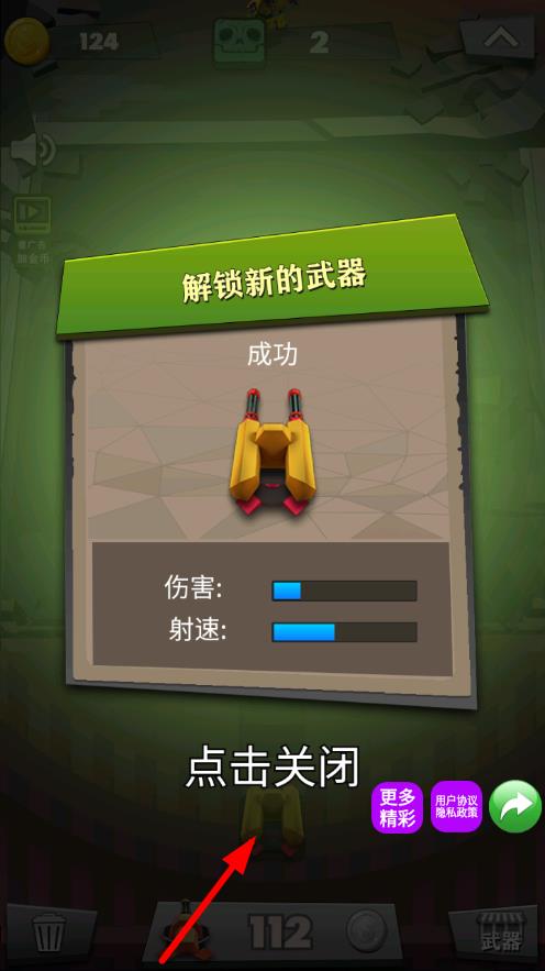 2、戰(zhàn)斗中收集掉落的道具與資源,將相同等級(jí)的武器拖到一起完成合并,提升攻擊范圍與傷害值。