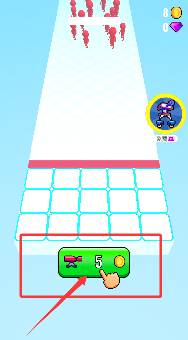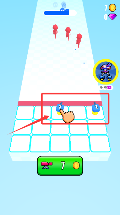 1、開局在跑道初始位置,輕觸啟動鍵消耗金幣建造首座防御塔。