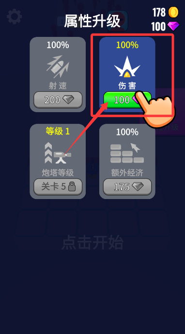 4、在強(qiáng)化界面投入紫鉆石,選擇攻擊屬性可以提升炮塔殺傷力。