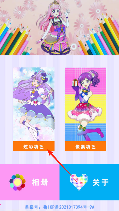 1、喜歡細(xì)膩畫(huà)風(fēng)就點(diǎn)炫彩填色按鈕,能體驗(yàn)鉛筆手繪般的上色質(zhì)感,想嘗試馬賽克效果可以選像素填色,兩種模式都能在相冊(cè)里查看完成的作品。