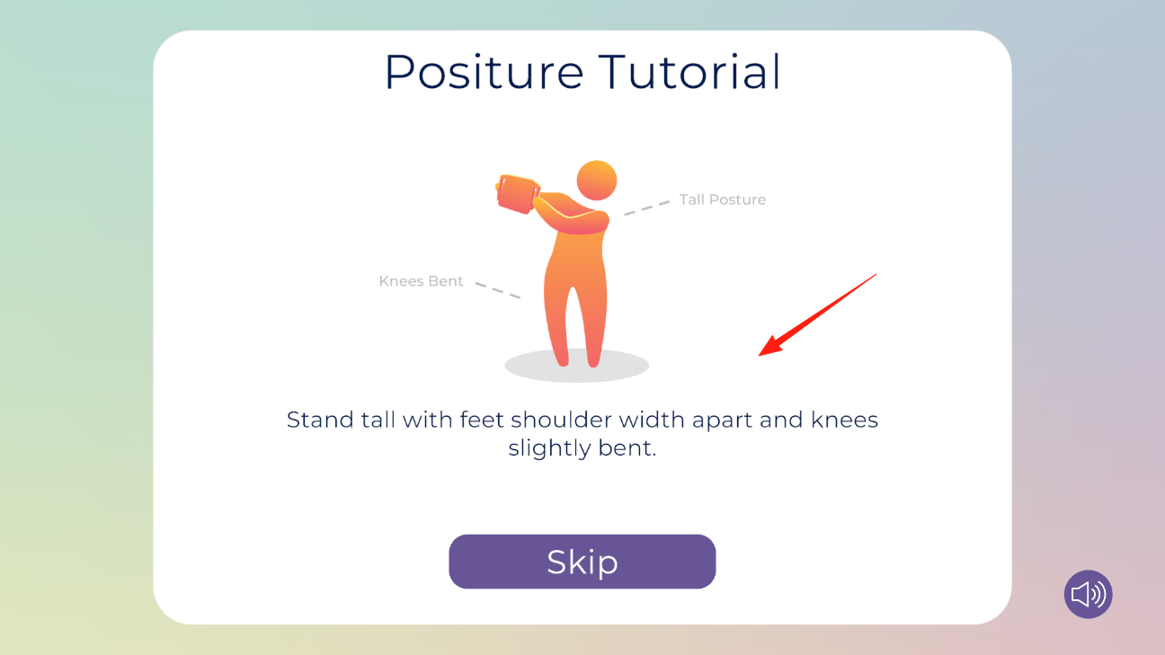 2、接著學(xué)站立姿勢(shì),按照提示,雙腳分開(kāi)和肩同寬,膝蓋微微彎,身體站直,調(diào)整好自己的站姿,感受下膝蓋彎曲挺胸抬頭的狀態(tài),姿勢(shì)對(duì)了再進(jìn)入下一環(huán)節(jié)。
