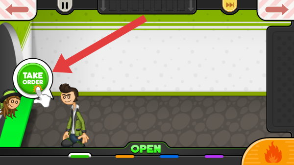 3、玩家根據(jù)新手教程的指引教程操作,可點(diǎn)擊TAKE-ORDER了解玩家所需要的菜品是什么。