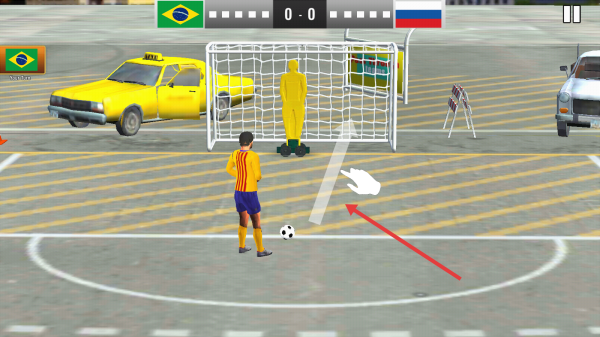 2、選擇已解鎖的SAINT PETERSBURG場地,匹配巴西vs俄羅斯等國家隊對戰(zhàn),進(jìn)入實時射門對決狀態(tài)。