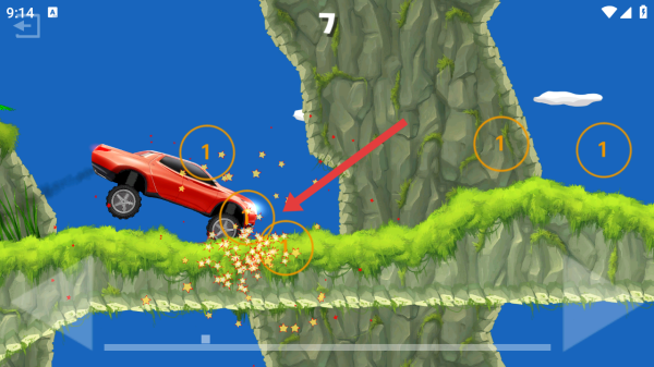 2、在爬坡路段,瞄準(zhǔn)橙色球體帶數(shù)字1標(biāo)識,通過油門來控制車輛爬坡,收集沿途積累分?jǐn)?shù)的數(shù)字球。