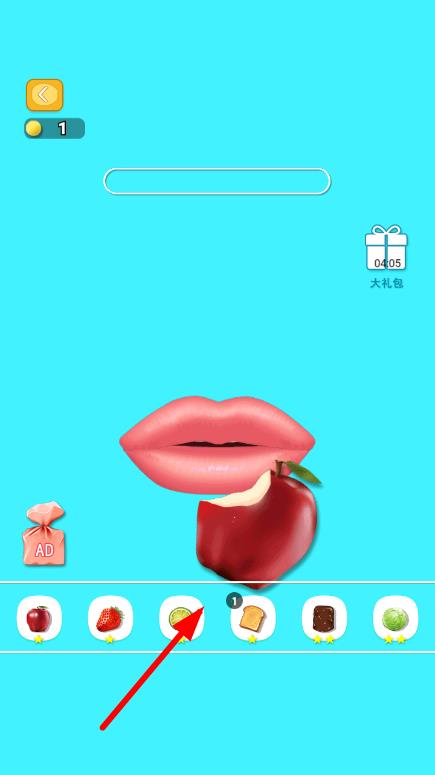 1、進入游戲后,選擇初始食物關卡,通過滑動屏幕控制嘴唇張合角度與幅度,對準食物完成“品嘗”動作,熟悉嘴唇的操控方式。