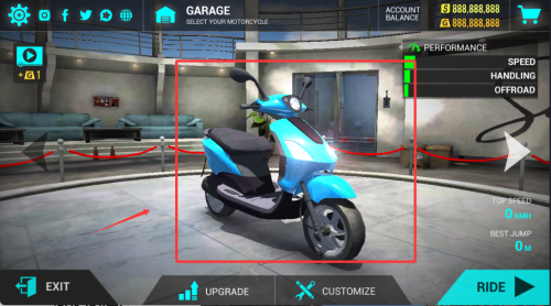 1、進(jìn)入車庫(kù)界面挑選心儀摩托,每款車型具備獨(dú)特的性能參數(shù)與操控特性。