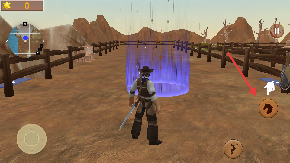 1、通過虛擬搖桿控制牛仔移動,右側(cè)按鍵完成射擊、跳躍等動作。