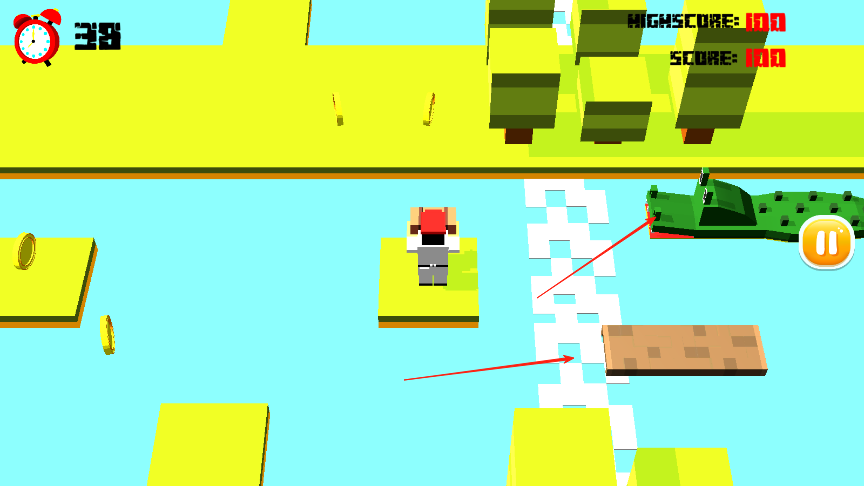 2、森林的場(chǎng)景里河道偏多,車輛并不密集,要注意河道上的木板會(huì)一直移動(dòng),注意不要碰到河道上白色的條條。