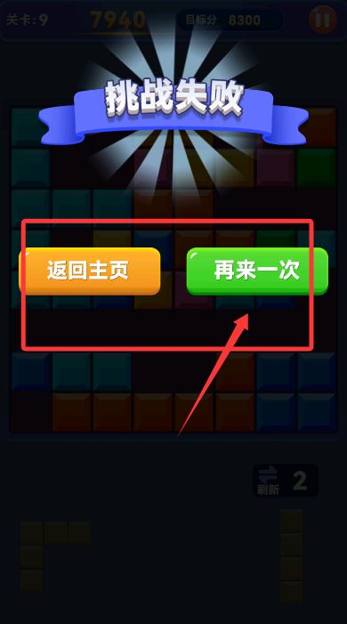 4、當(dāng)闖關(guān)失敗時,可重試當(dāng)前關(guān)卡或返回主界面選擇新挑戰(zhàn)。