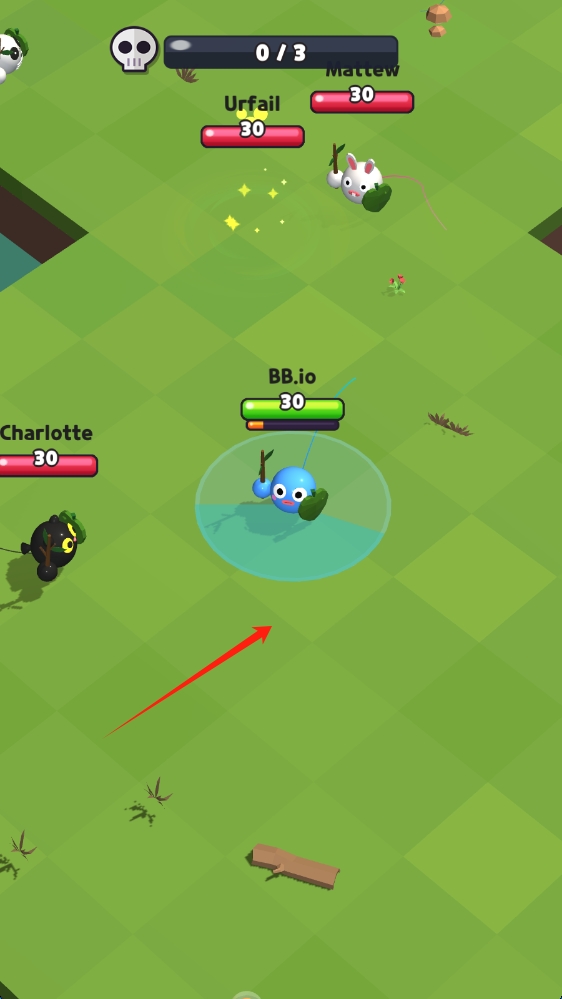 2、對(duì)戰(zhàn)界面,操控藍(lán)色角色BB.io,與Urfail、Matthew、Charlotte等角色戰(zhàn)斗,目標(biāo)擊敗3個(gè)敵人。
