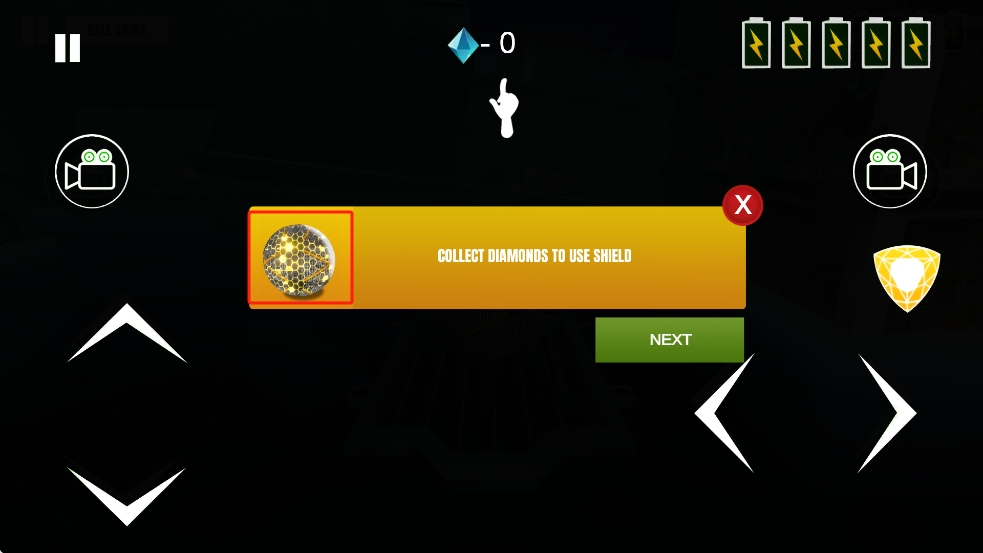 1、初始界面有鉆石護(hù)盾提示,會(huì)教你基本的操作流程,點(diǎn)擊綠色NEXT進(jìn)入游戲,為后續(xù)游玩做準(zhǔn)備。