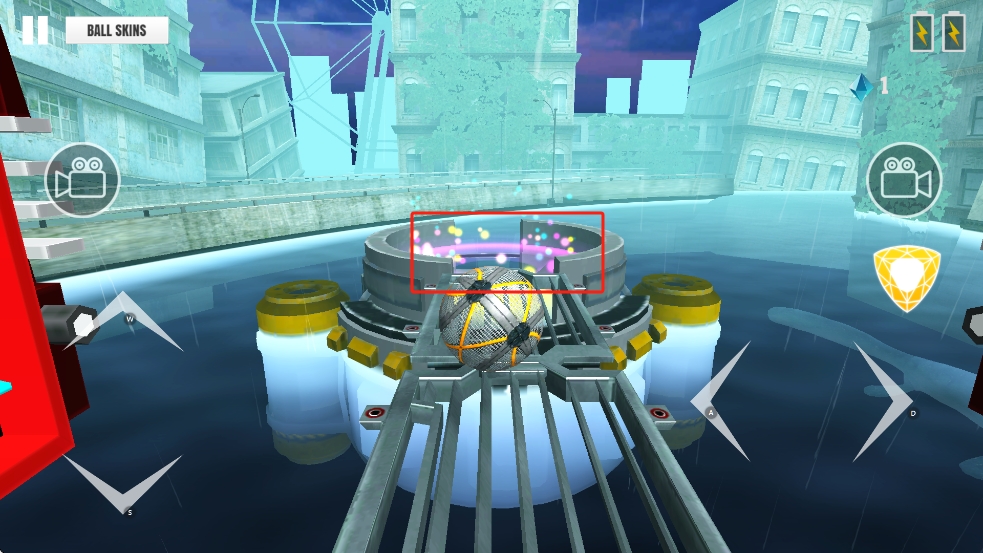 3、持續(xù)收集鉆石、保持球的平衡,球滾動(dòng)到帶有彩色光效的裝置處,使其進(jìn)入裝置,即可通關(guān)。
