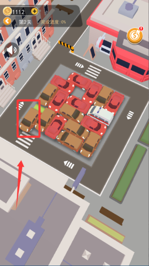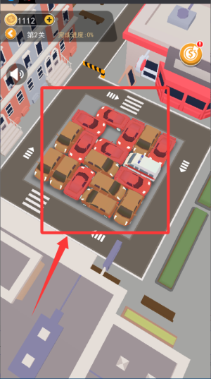 1、進(jìn)入游戲后選擇關(guān)卡開始挑戰(zhàn)、先觀察車位布局和車輛位置。思考每一步移動(dòng)順序、確保指定車輛能順利開出。
