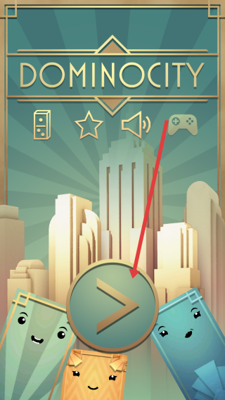 1、點(diǎn)擊主界面中央的箭頭按鈕,進(jìn)入DOMINOCITY游戲,開(kāi)啟多米諾骨牌搭建挑戰(zhàn),準(zhǔn)備體驗(yàn)城市主題的多米諾趣味玩法。