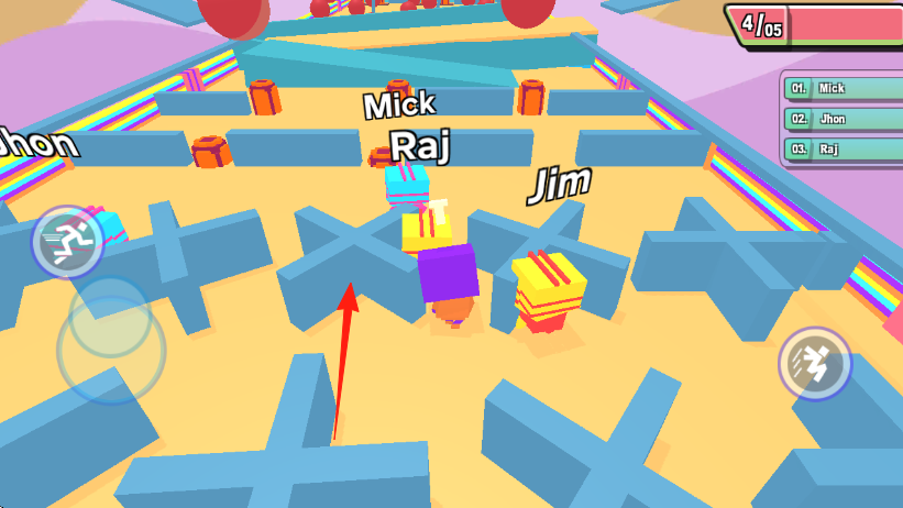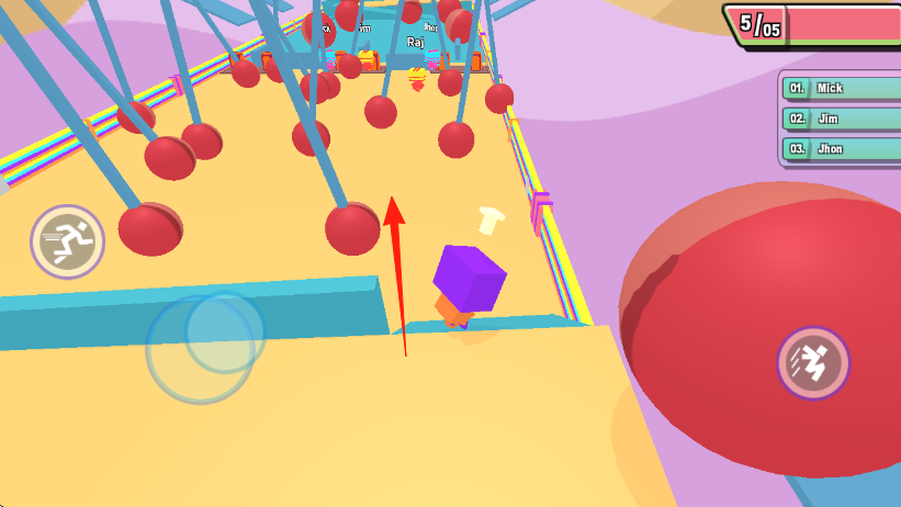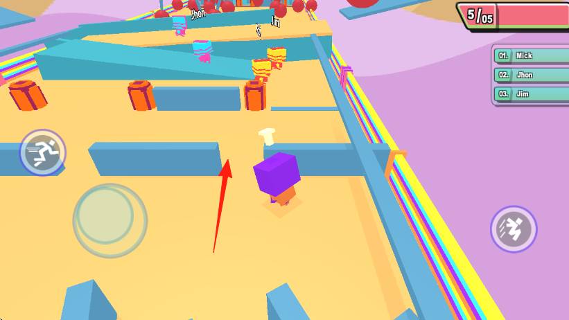 1、操控紫色方塊角色玩家,與Mick、Jhon、Raj、Jim等對手競爭。