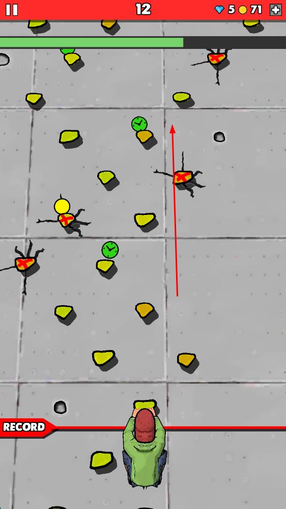 1、簡(jiǎn)易操作方式:點(diǎn)擊屏幕即可啟動(dòng)攀巖,通過點(diǎn)擊左右兩側(cè)控制方向,跟隨巖石走向向上攀爬,操作便捷容易上手。