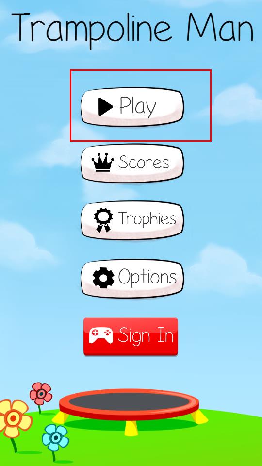 1、需要進(jìn)入游戲主界面,點(diǎn)擊帶有黑色播放箭頭的白色Play按鈕,正式開啟蹦床挑戰(zhàn),解鎖火柴人跳躍玩法。