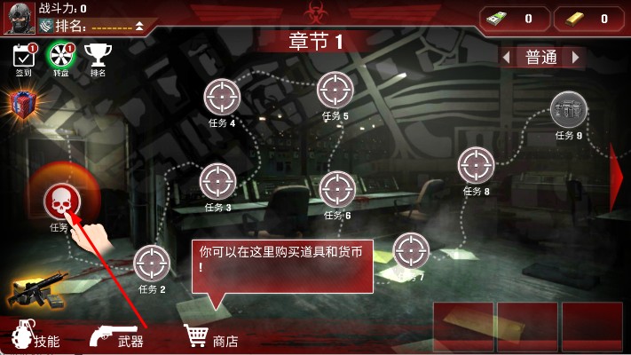 1、任務(wù)開啟與準(zhǔn)備:進(jìn)入后,選擇章節(jié)任務(wù),查看任務(wù)目標(biāo)與獎勵。任務(wù)前挑選技能,如治療、無限子彈,武器,根據(jù)任務(wù)需求搭配,點擊PLAY進(jìn)入戰(zhàn)場。