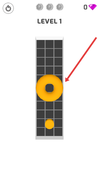 1、滑動(dòng)屏幕翻轉(zhuǎn)黃色甜甜圈,使其下落覆蓋下方小球,填滿方格,完成LEVEL1的形狀拼接任務(wù)。