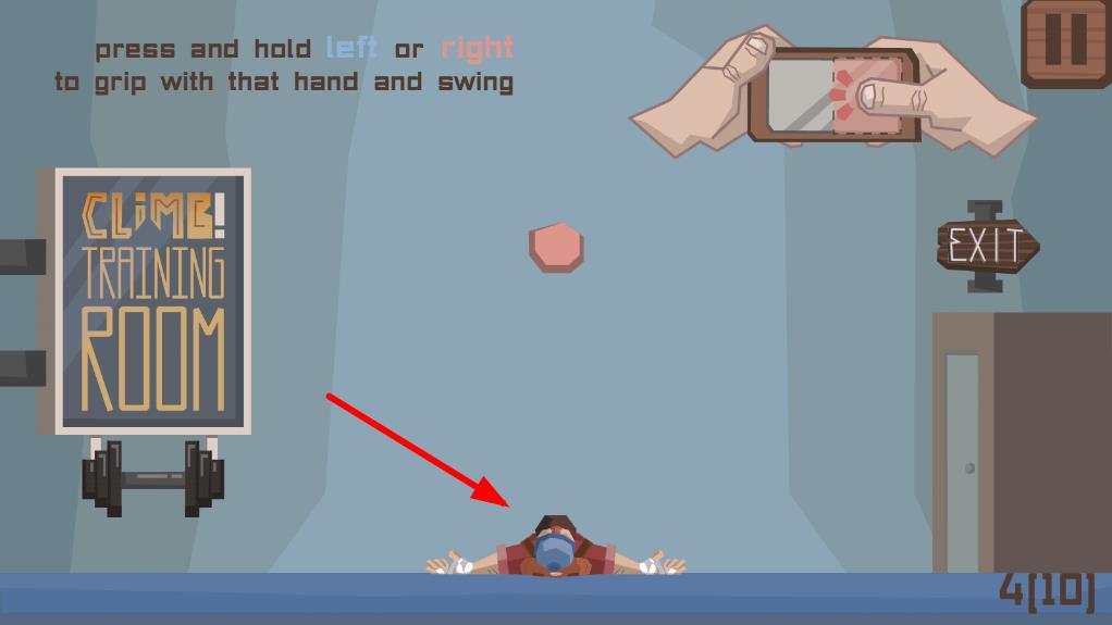 1、進(jìn)入游戲選擇初始關(guān)卡,操控背包客調(diào)整姿勢(shì),左右晃動(dòng)屏幕蓄力,將背包甩出至首個(gè)定點(diǎn)并抓牢,開啟攀巖挑戰(zhàn)的第一步。