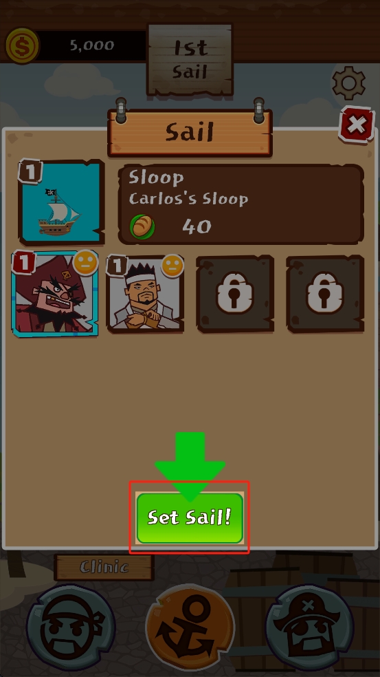 3、選好船只與船員后,這里我們點(diǎn)擊綠色的啟航按鈕,確認(rèn)開啟航行,推進(jìn)游戲里的冒險進(jìn)程。