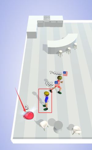 2、操控紅框YOU角色,避開對手收集紅色道具。