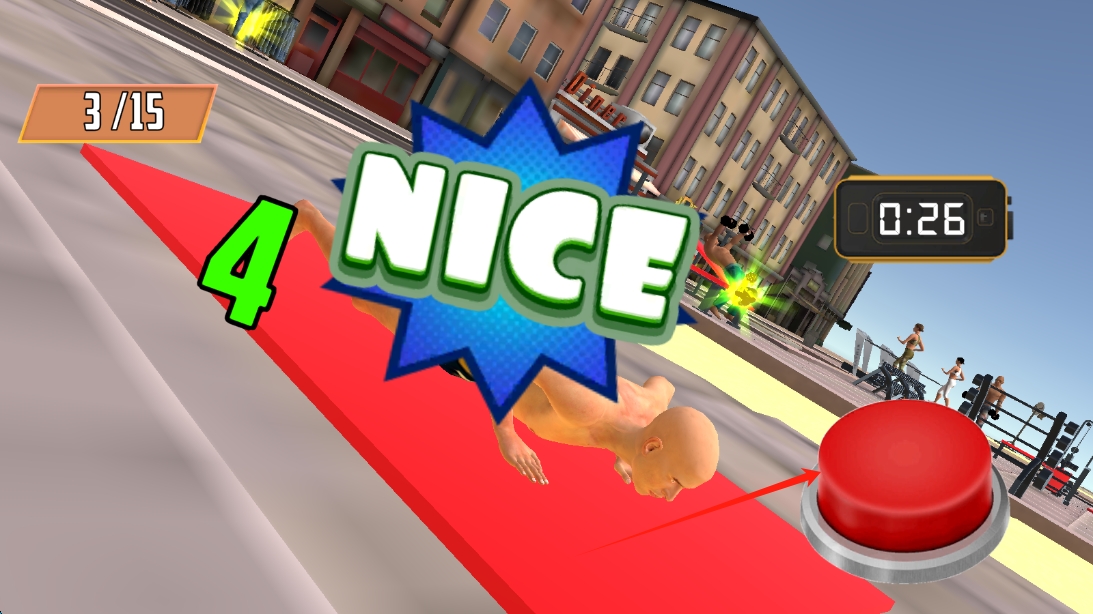 3、訓練場景,按提示點擊按鈕,配合角色動作,完成俯臥撐訓練,推進關(guān)卡進度,點擊俯臥撐。