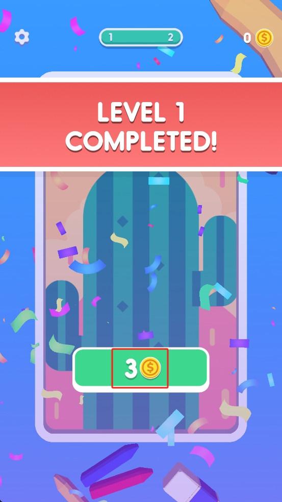 3、關(guān)卡完成后,點(diǎn)擊綠色的按鈕領(lǐng)取獎(jiǎng)勵(lì),積累金幣可用于解鎖道具或新關(guān)卡,隨后點(diǎn)擊進(jìn)入下一關(guān)挑戰(zhàn)更難彈射任務(wù)。