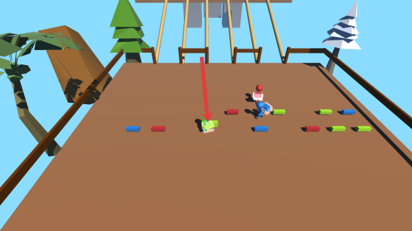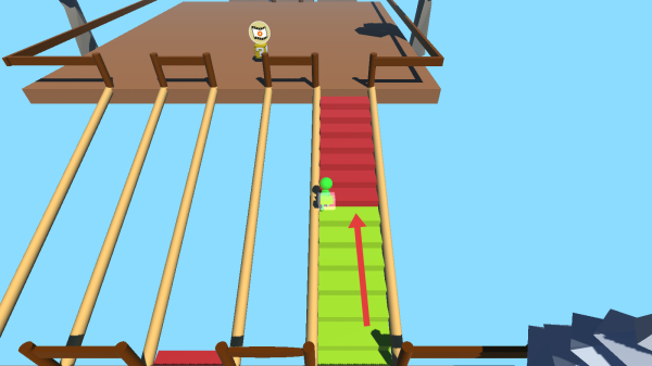 1、打開游戲后,開始搜尋與自己身上的顏色一樣的木塊,靠近拾取,拾取完畢后到前面木橋放置。