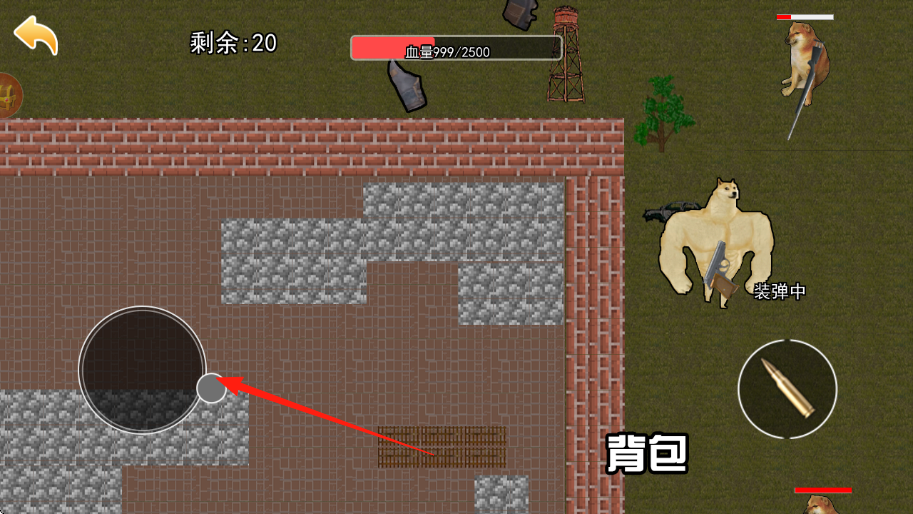 3、用左側搖桿移動,躲避敵人攻擊,利用地形磚墻、掩體,推進至剩余20敵人階段,持續(xù)輸出。
