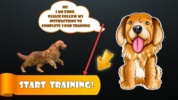 1、點(diǎn)擊界面底部橙色START-TRAINING按鈕,跟隨Zoro的指引,開啟狗狗訓(xùn)練課程,學(xué)習(xí)操控指令完成挑戰(zhàn)。