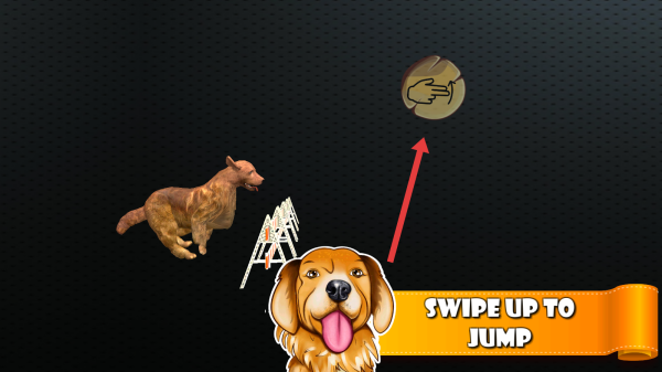3、當(dāng)狗狗前方出現(xiàn)障礙,按照提示向上滑動(dòng)屏幕,讓狗狗跳躍過障礙,完成跳躍指令的訓(xùn)練任務(wù)。