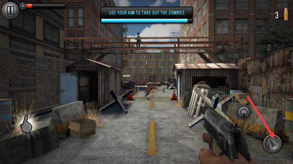 2、面對遠處僵尸,預判移動軌跡,利用槍械射程,按提示USE YOUR AIM TO TAKE OUT THE ZOMBIES。