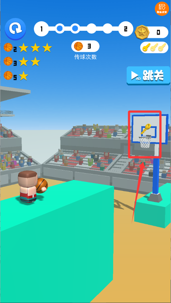 3、需要把球投到籃球里面還能獲取一條鑰匙。