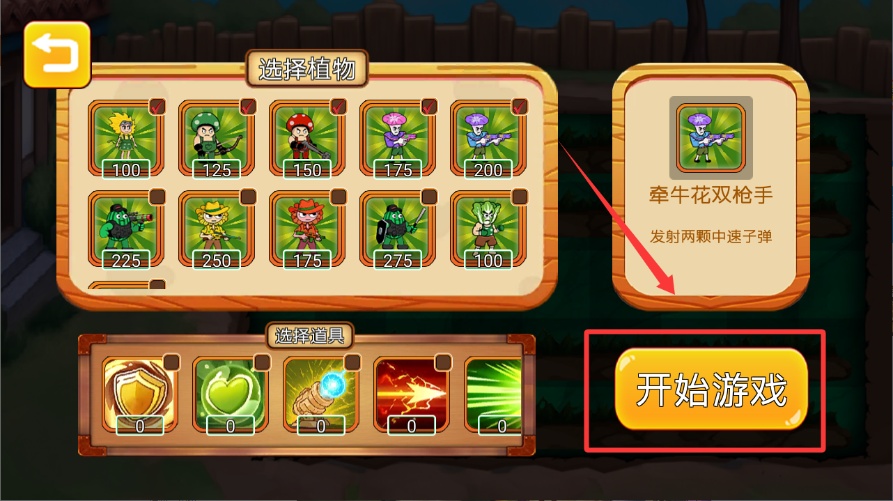 4、勾選好植物,再按右下角的開始游戲。