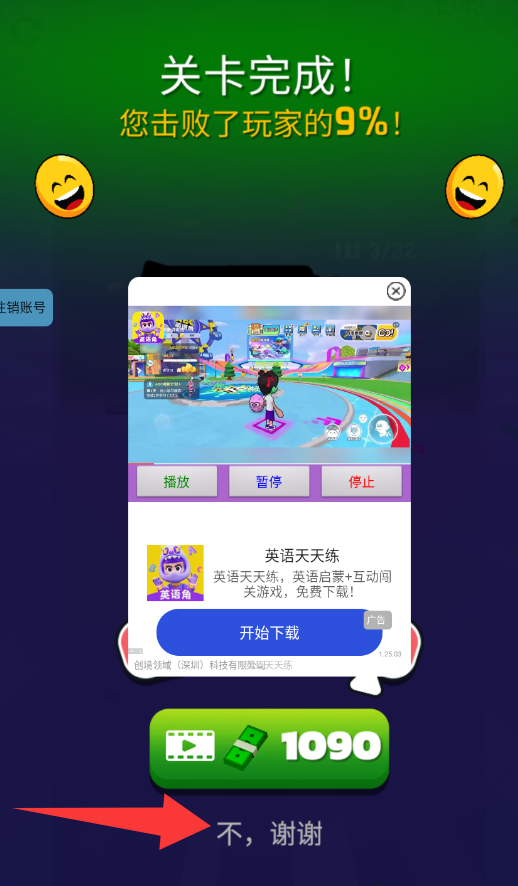 4、恭喜你過關(guān)了,好棒棒喔點(diǎn)擊不,謝謝下一關(guān)。